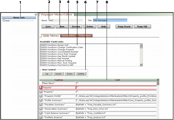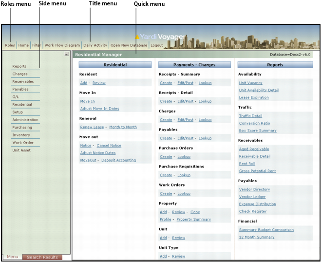 Available Yardi Links This field contains a list of command links that you can add to Voyager menus, using the