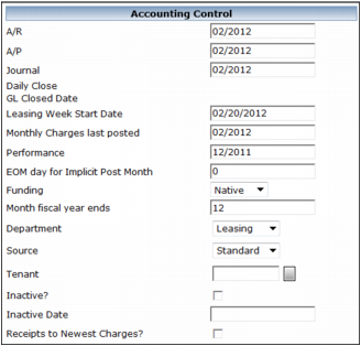SETUP Complete this field with the month for which monthly charges were last posted. Monthly posting uses the month and year from this field by default.
