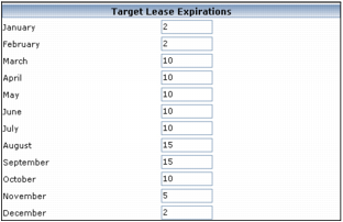 Default number of months for leases for Residential or Affordable properties. This number appears in the Lease Term (months) field on the Rental Options tab of the Prospect Guest Card. For more information, see “Adding Guest Cards” in the Residential User's Guide.