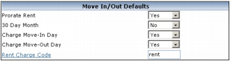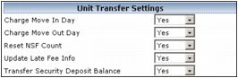 If Prorate Rent in the Move In/Out section is set to Yes, this setting overrides the Charge Move-In Day setting for move-ins due to unit transfers.